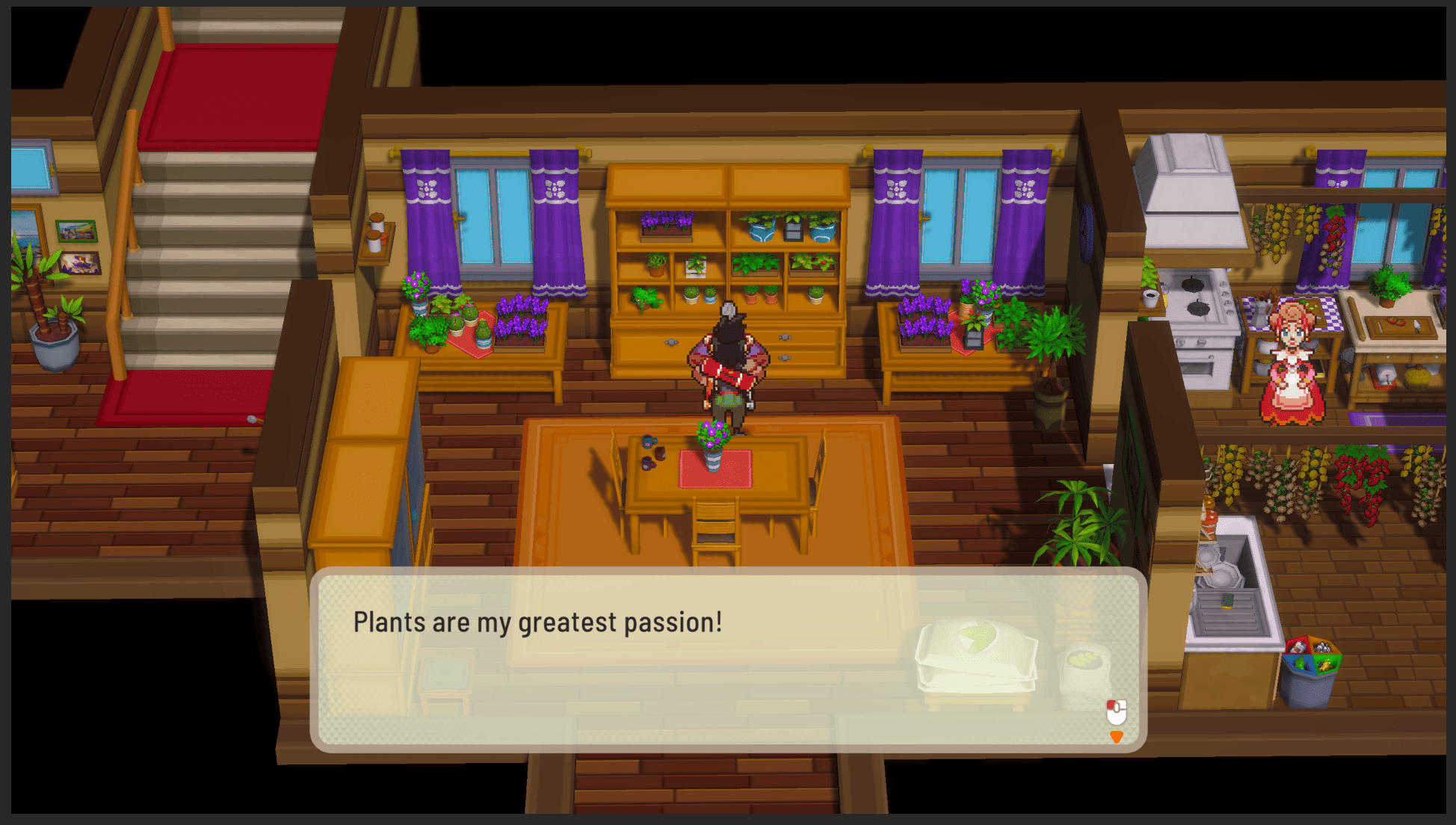The graphics are colorful, with vibrant palettes and unusually detailed environment design - I was surprised to discover that each interior was hand-made, and no two houses share the same shape or set of furniture. Despite the fact that not too many useful items or lore-heavy conversations can be found in these maps, I loved exploring them and getting a sense of each homeowner’s personality through their décor.